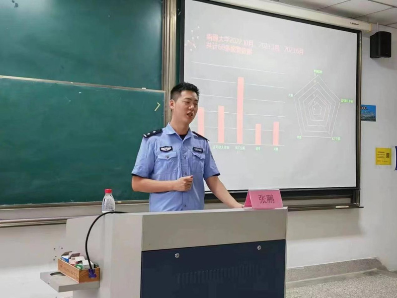 近年来,随着互联网的快速发展和数字化生活的普及,网络诈骗案件呈现出高发的趋势。为了提高大一新生的防诈意识,保护学生的财产安全,太阳成官网积极开展了反诈宣传活动。我校邀请狼山所张鹏警官为新生进行反诈宣传讲座,讲座由2023级新生辅导员王蕊老师主持。
