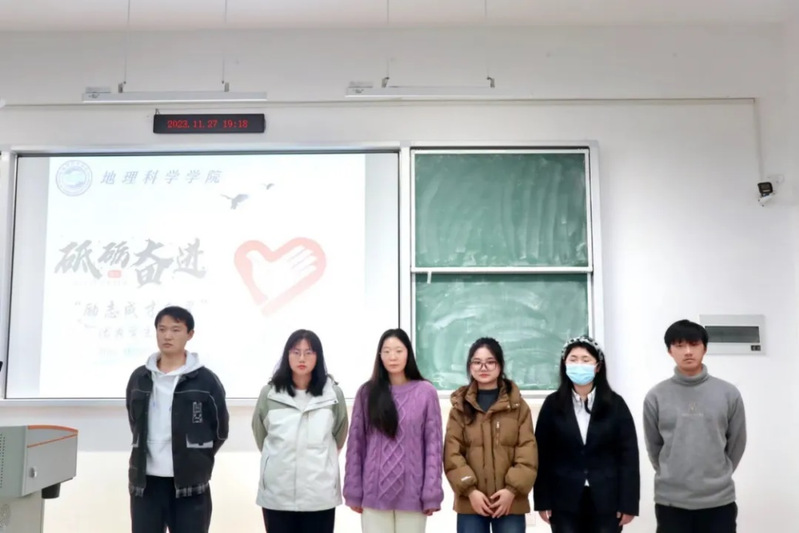不忘初心,逐梦前行。地师213的丁文娜主要为大家介绍了她学习,科研与社会实践方面的宝贵经验。徜徉在书山学海、攀登于科研顶峰、跋涉于人间烟火。她用实际经历向我们证明了执行力和有效处理计划任务在我们学习生活中的重要性。为我们树立了一个不懈努力,励志成才的标杆。