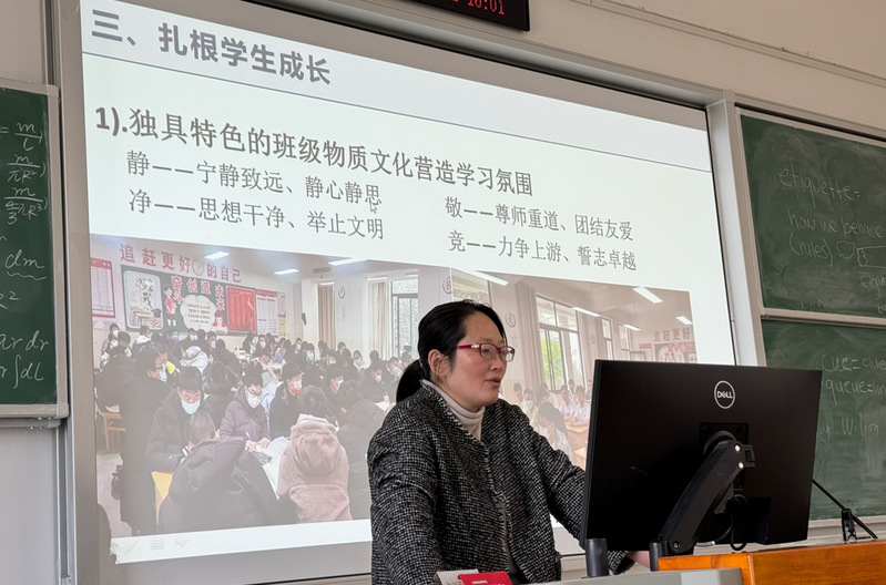 作为我校 2003 届优秀毕业生,严培娟老师深耕教坛二十二载,始终坚守高三教学一线并担任学科组长,长期致力于高考命题趋势研究与教学改革实践,对新课标、教材及高考试卷的深度解读与创新运用形成了独特的教学体系。讲座中,严老师从扎根专业素养、扎根课堂实践、扎根学生成长三个方面进行了深入阐述。严老师不仅毫无保留地分享了地理教学的前沿理念与实战策略,更以班主任工作的鲜活案例生动诠释了 "育人" 艺术的深刻内涵。通过这场理论与实践交融的精神盛宴,学子们深切感受到新时代地理教师肩负的历史使命,对专业发展方向有了更清晰的认知,为未来职业道路筑牢了思想根基。
